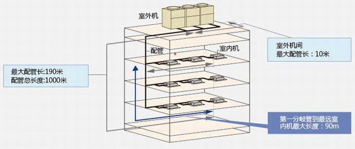 最大當(dāng)量單管長度可達(dá)190米,總管長度可達(dá)到1000米,系統(tǒng)設(shè)計更靈活方便。